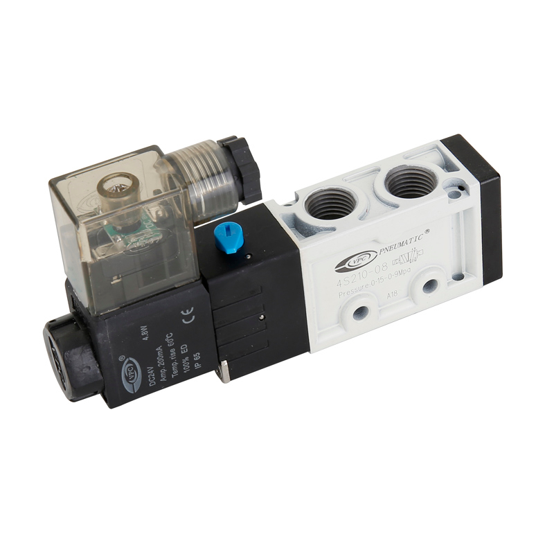 4S210-08 (MVSC-220) Solenoid Valve Type Code.: 5 port 2 position (2/5way) Port size: In=Out=1/4” Fluid: Air Operation: Internal Guide (External Guide) Operating Pressure: 0.15~0.8MPa Max. Proof Pressure: 1.2MPa Temperature: -5~60℃ Allowable Voltage: ±10% of rated voltage Protection Grade: Class F.IP65 Heat Resistant Grade: B Coil Type: DIN Type, Flying Leads Max Acting Frequency: 5 times/second Shortest Excitation Time: 0.05 second Dimension is same as 4V210-08 and MVSC-220 Working Voltage: DC12V DC24V AC110V AC220V